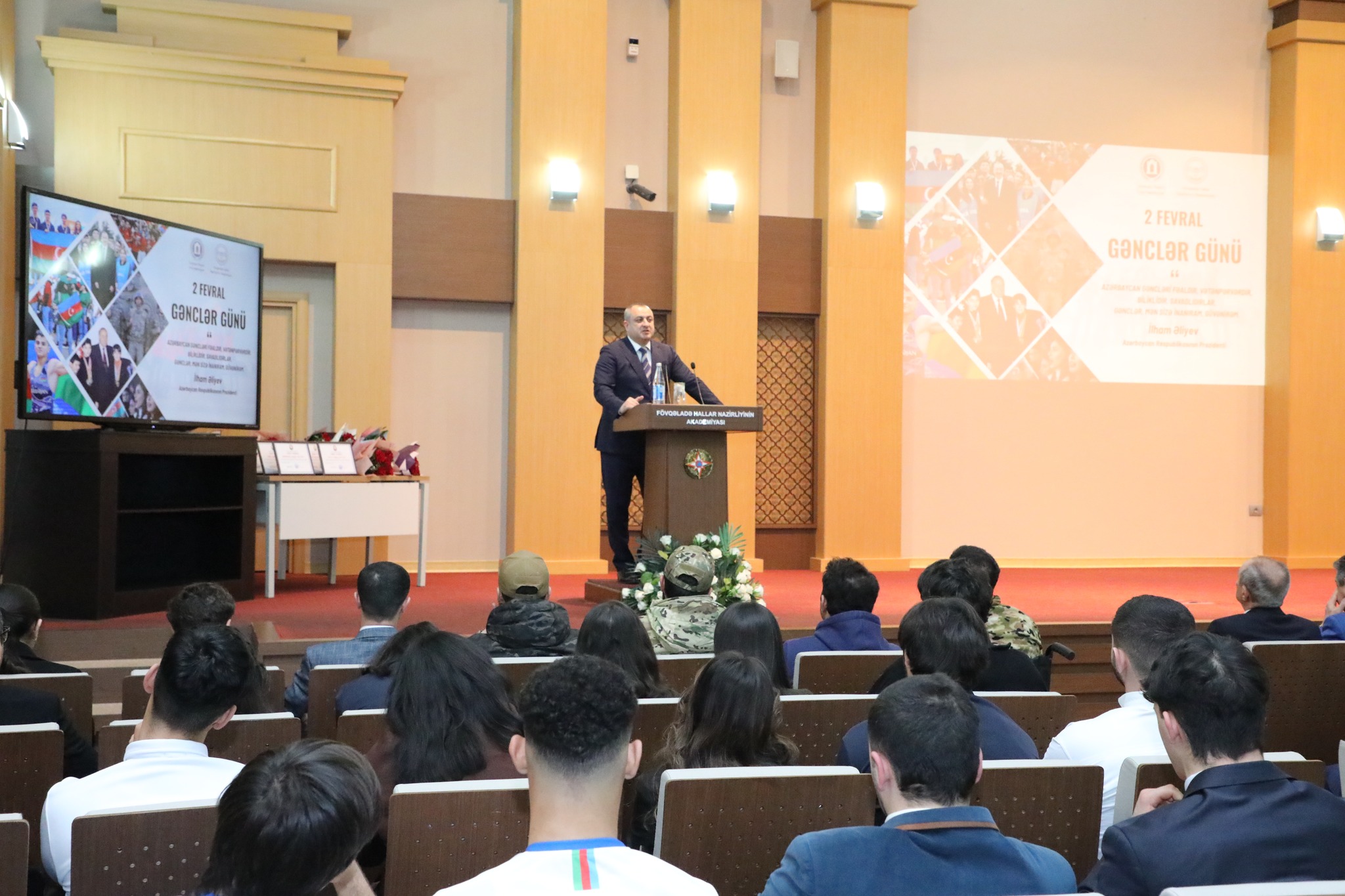 Akademiyanın akt zalında davam edən tədbirdə Dövlət Himni səsləndirilib, Ulu Öndər Heydər Əliyevin, eləcə də ölkəmizin ərazi bütövlüyü və suverenliyi uğrunda mübarizədə canlarını qurban vermiş şəhidlərimizin əziz xatirəsi bir dəqiqəlik sükutla yad edilib. Sonra 2 fevral – Azərbaycan Gəncləri Gününə həsr edilmiş videoçarx nümayiş olunub.